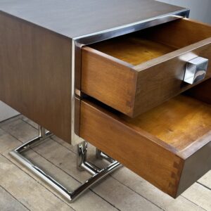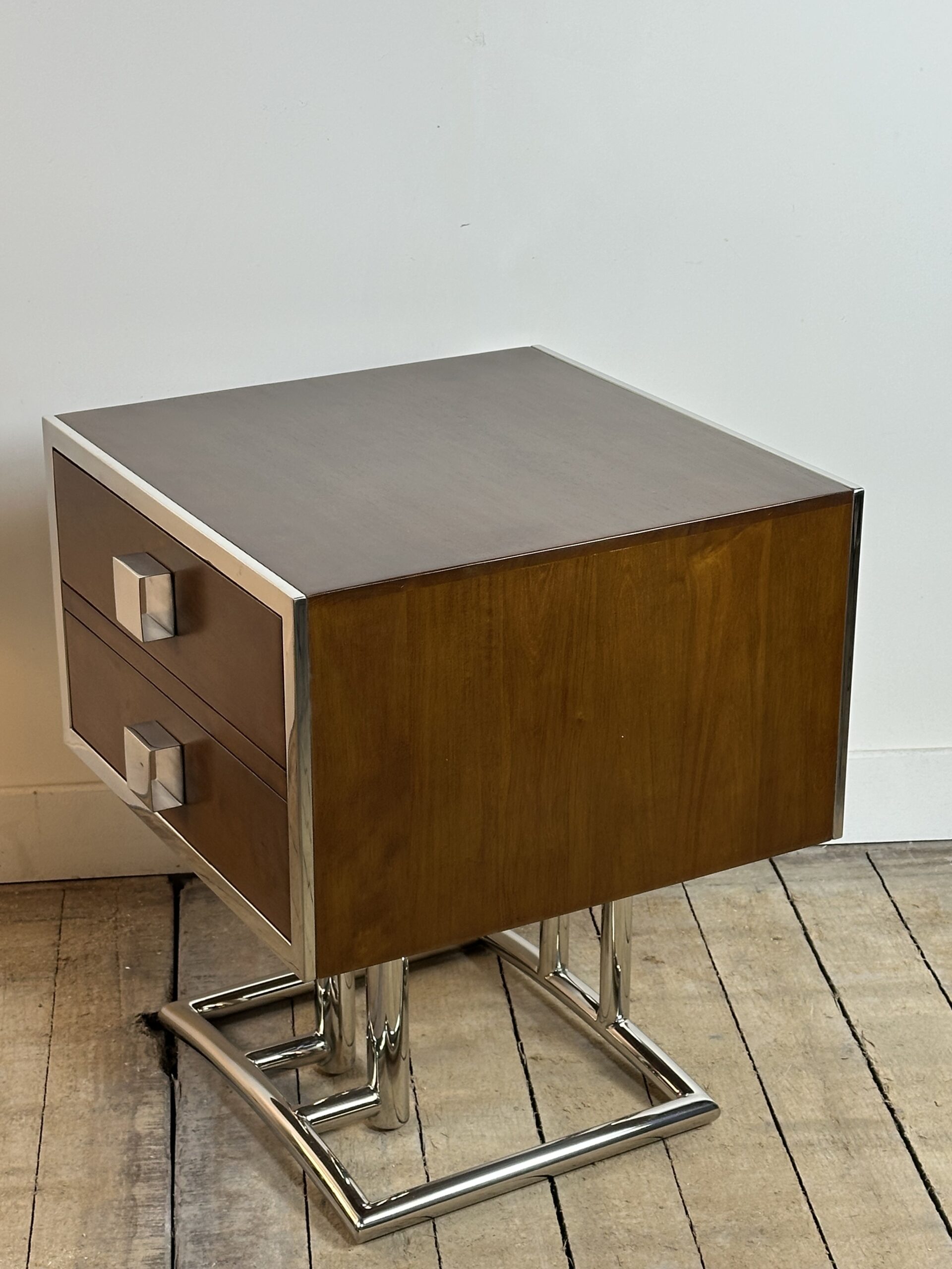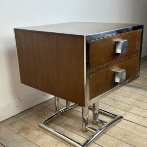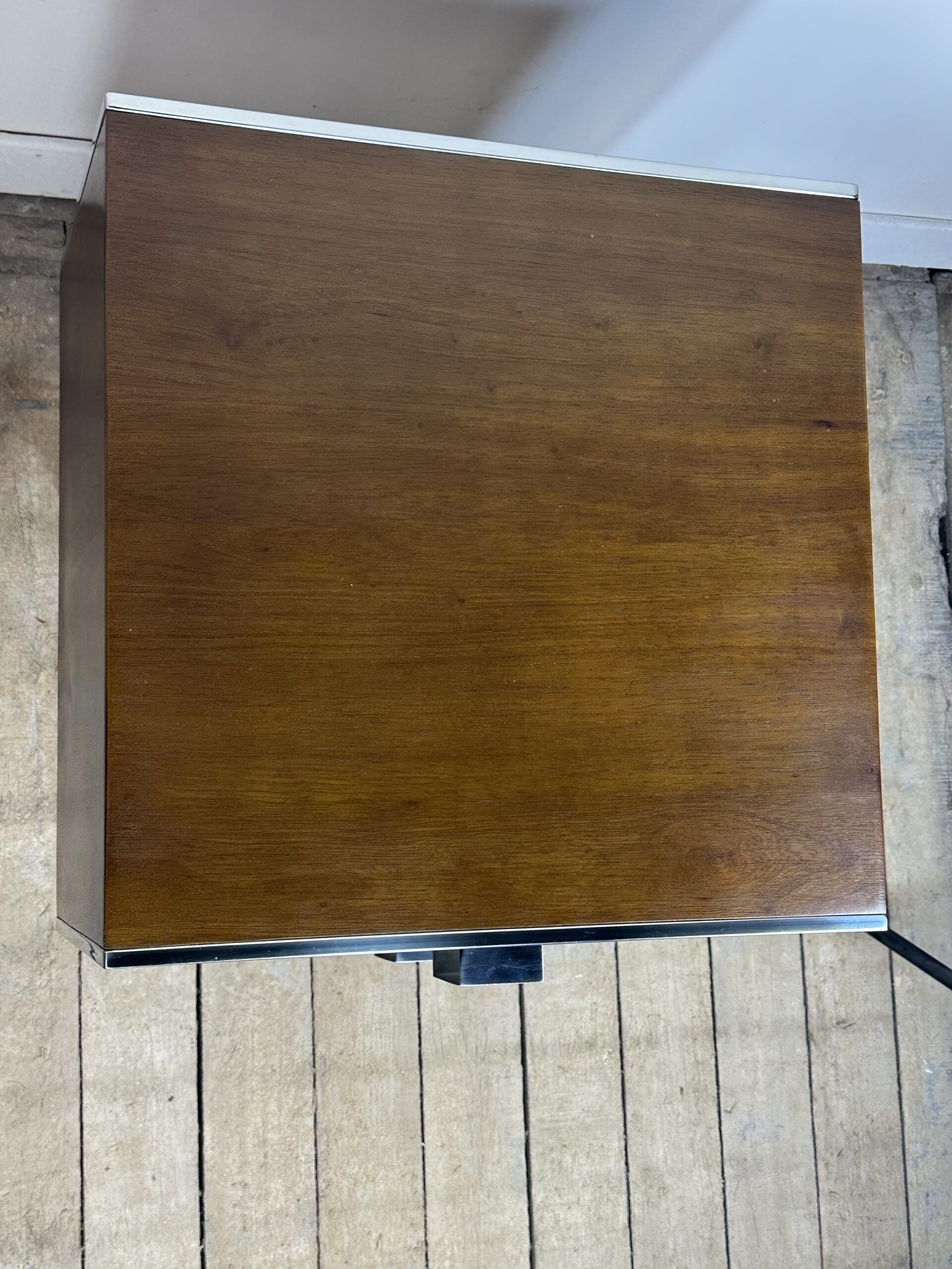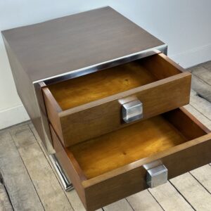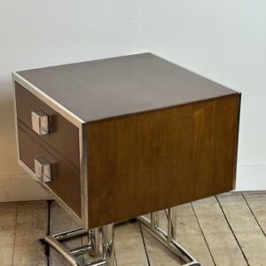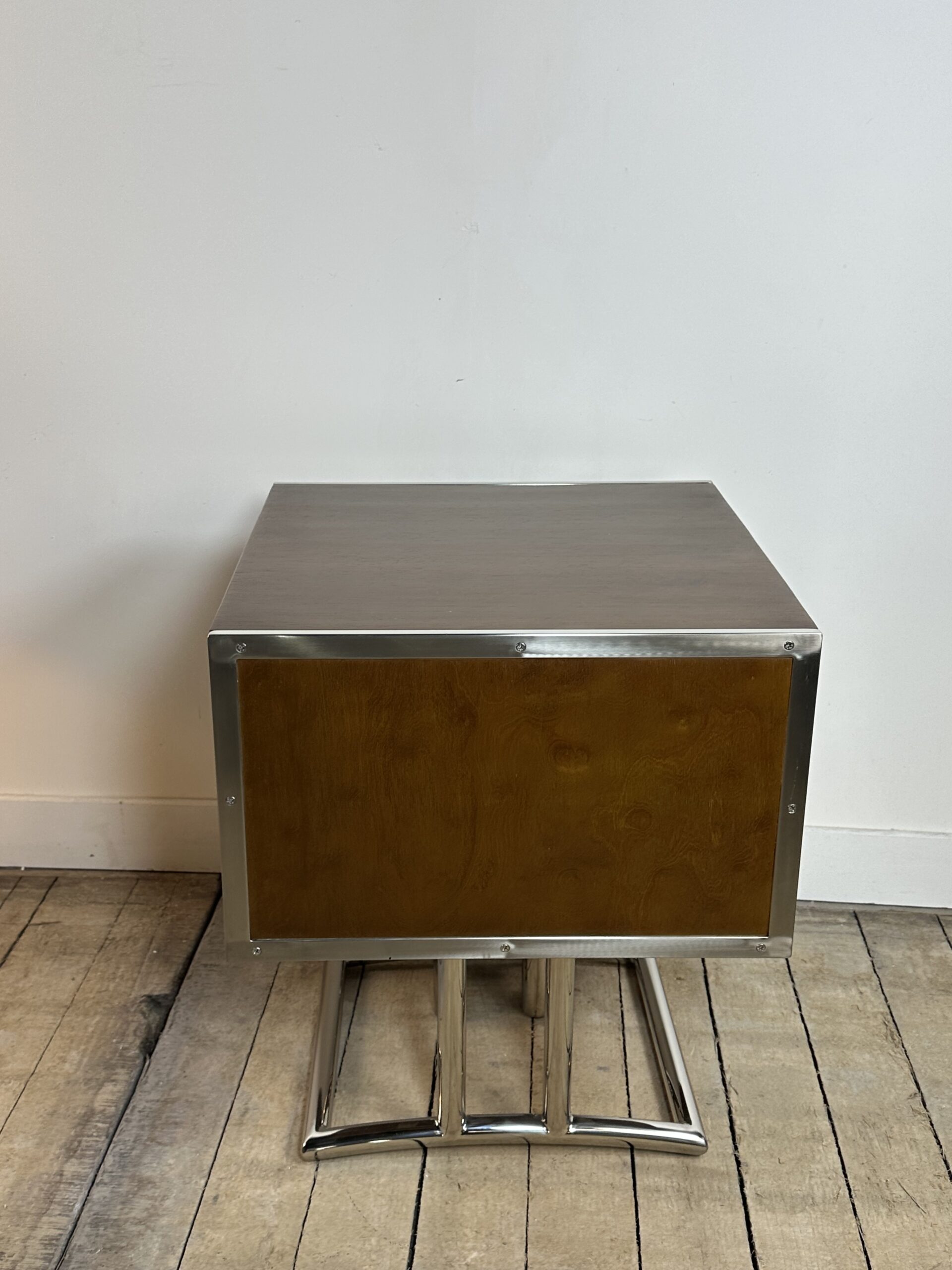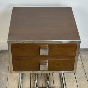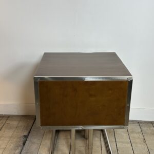 Bout de canapé / chevet ou table d’appoint de style art déco en bois teinte noyer et inox chromé (inoxydable)