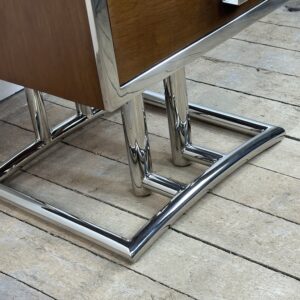 Bout de canapé / chevet style Art déco en bois et alu chromé
