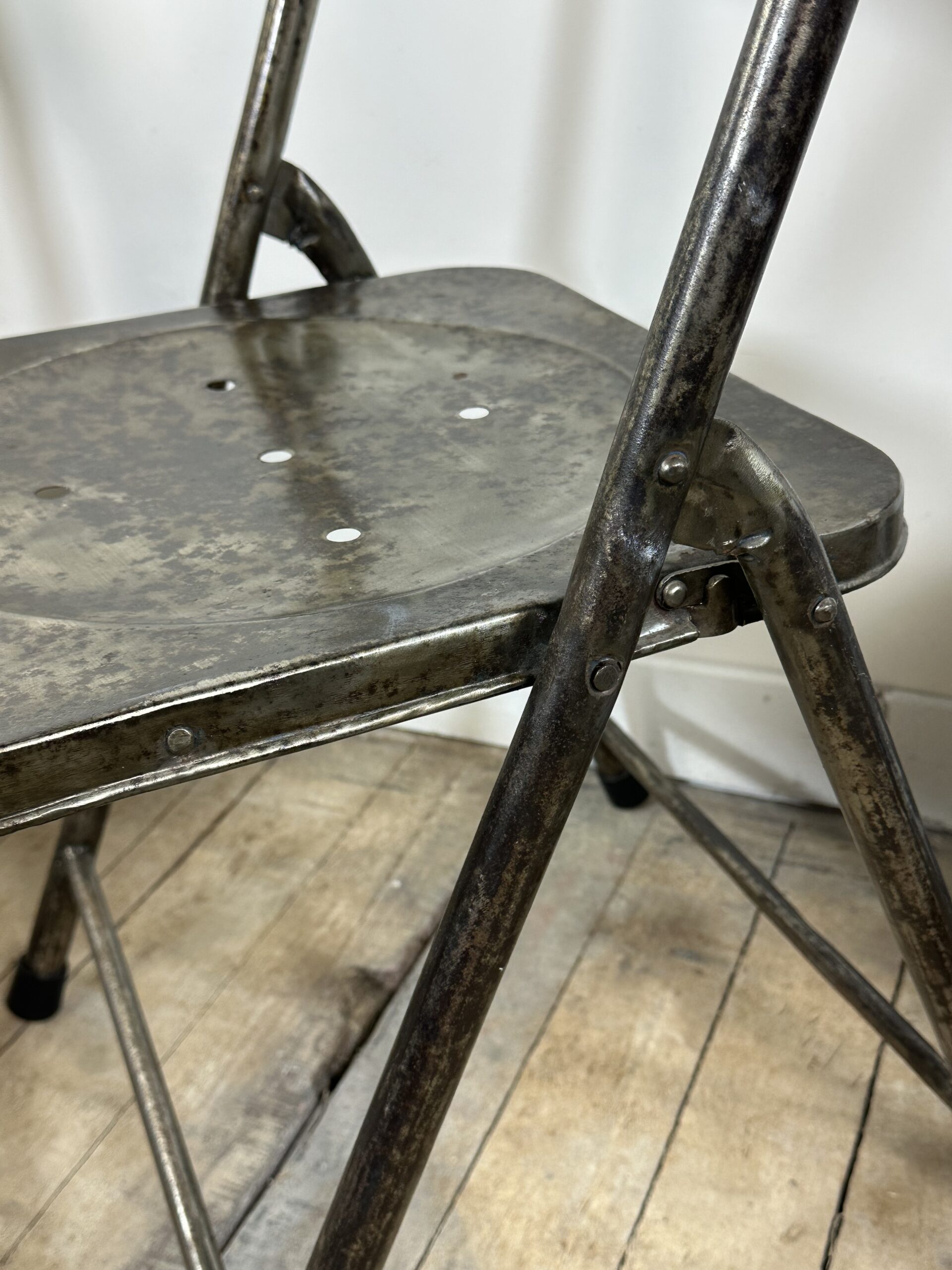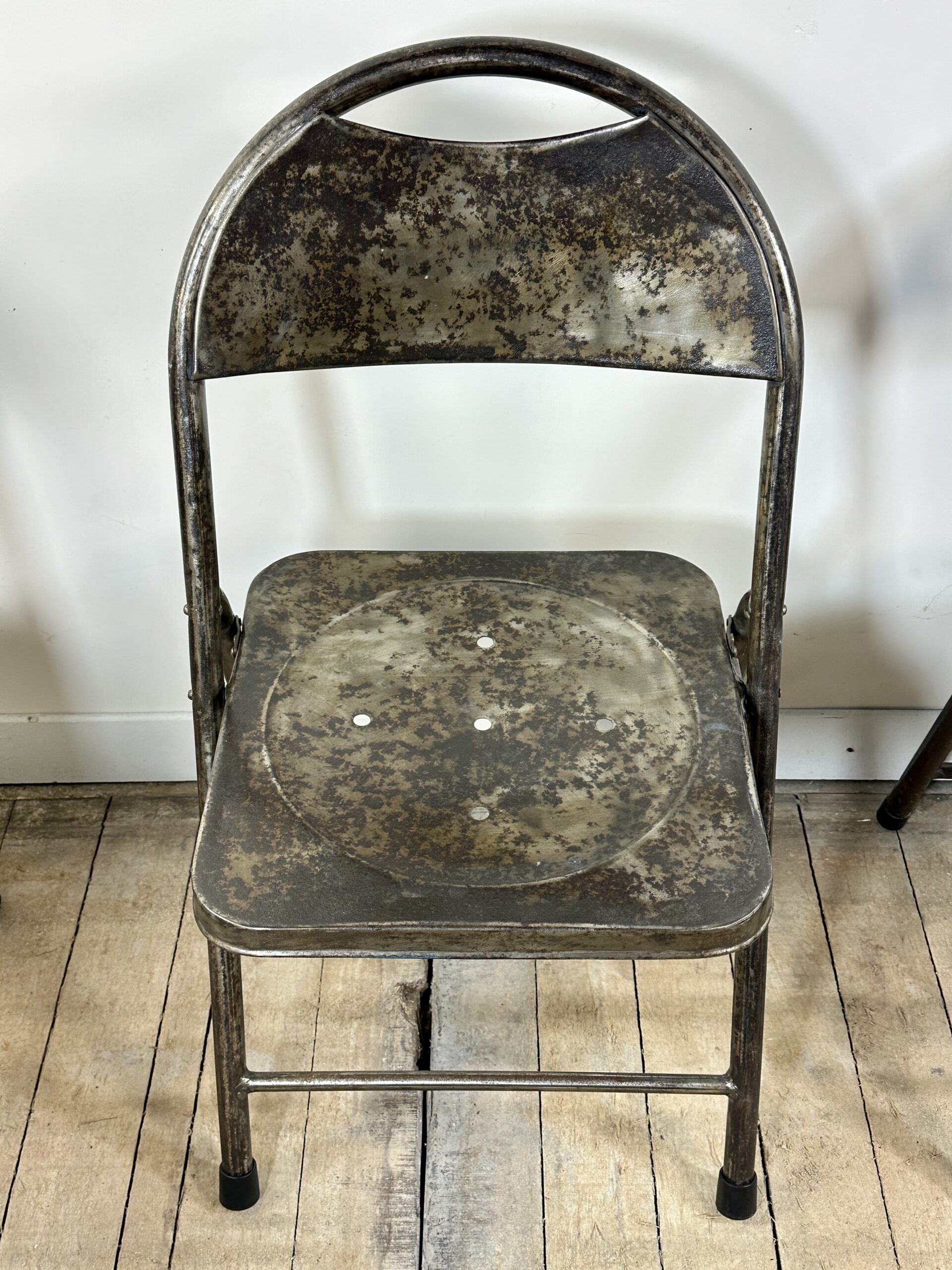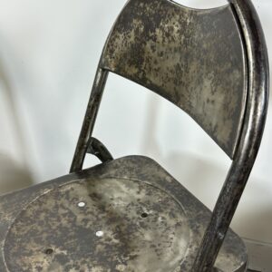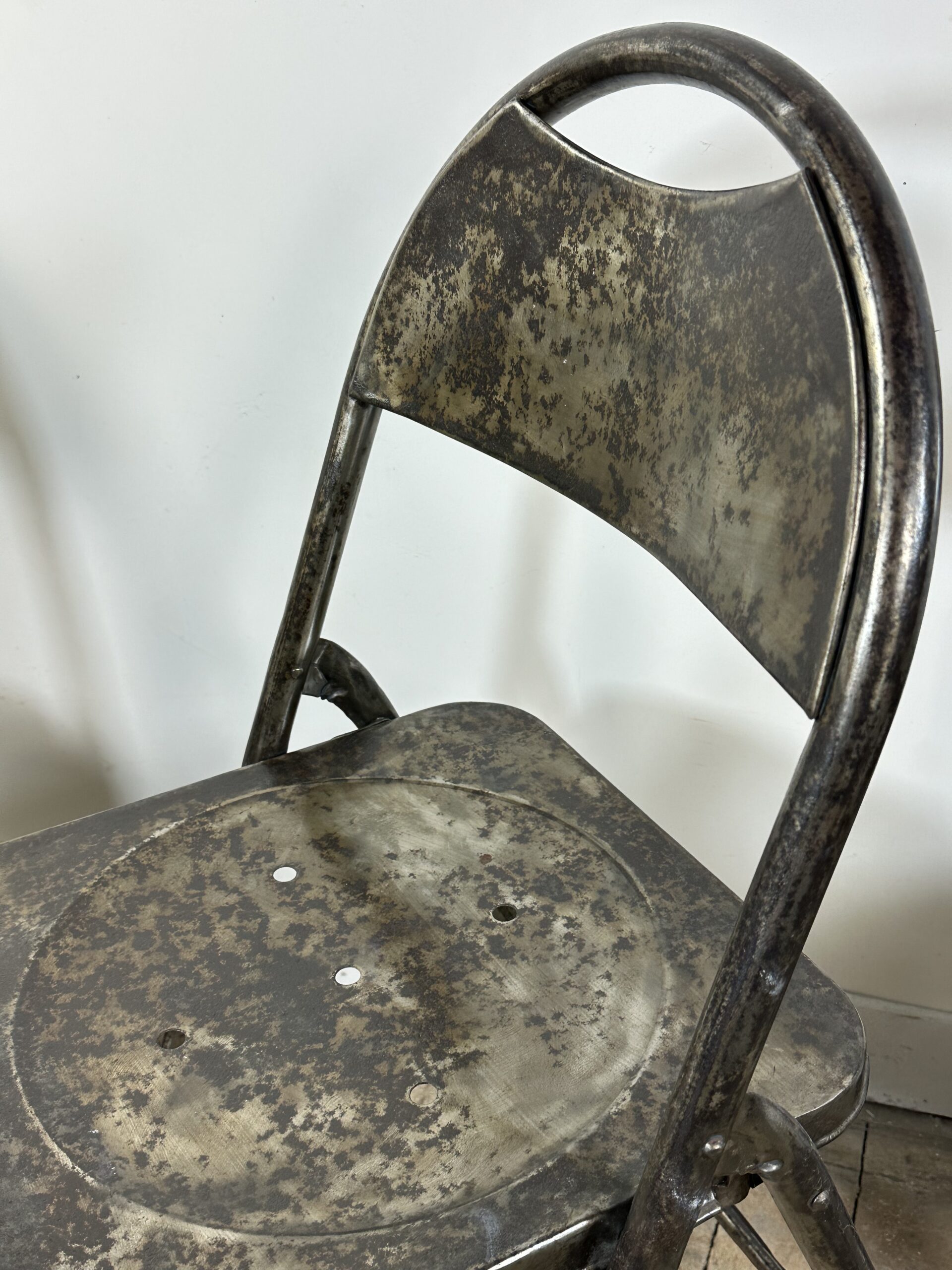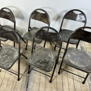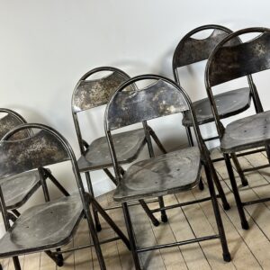 Série de 6 chaises pliantes de style industrielle en métal teinte façon patine rouillée des années 2000.