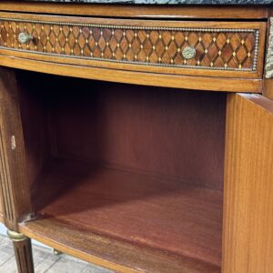 1 porte et 1 tiroir. 4 pieds fuselés cannelés. Saboi laiton.